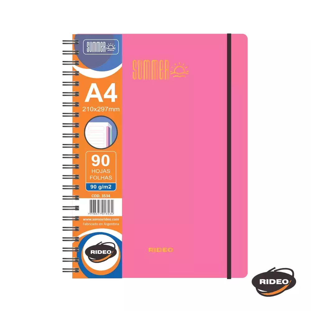 CUADERNO A4 3534 SUMMER C/ELASTICO 90HJS 90GRS = RIDEO FUCSIA
