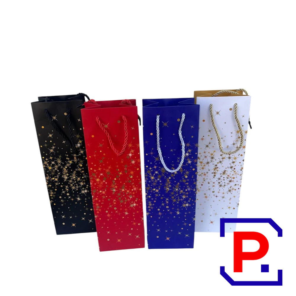 BOLSA BOTELLA ESTRELLITAS DORADA 35X11X9CM PACK X12 UNID NEGRO