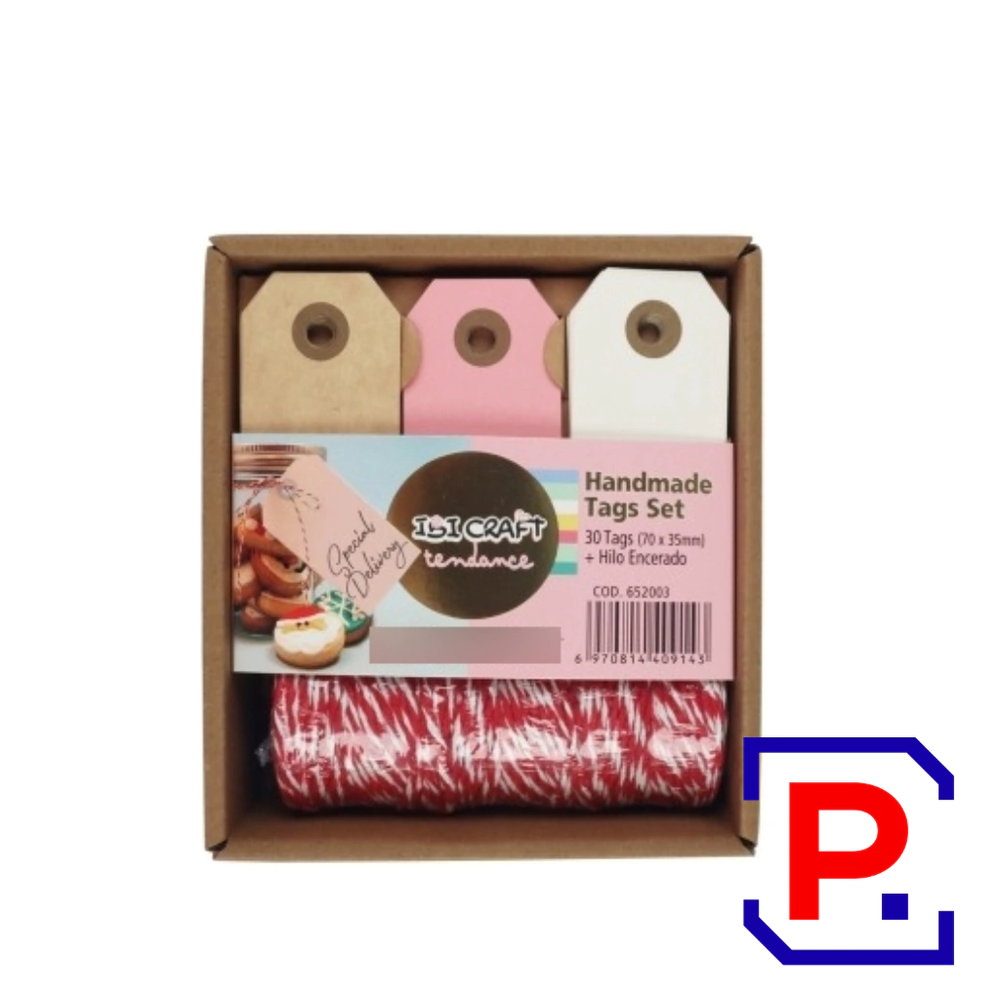 SET TAGS 30PCS C/ HILO 70*35MM CORDEL ROJO 652003