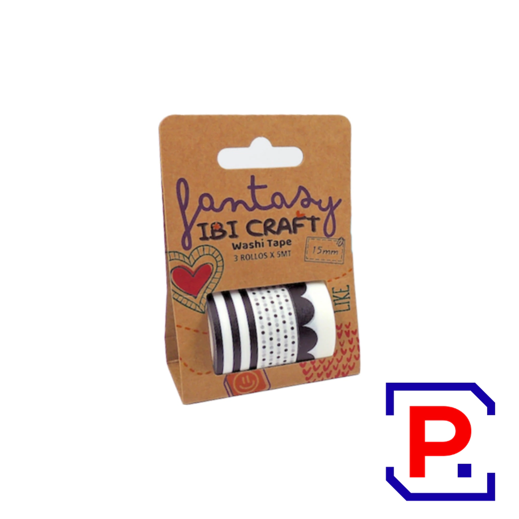 CINTA WASHI TAPE DISPLAY 3 ROLLOS DE 5MTS BLACK 055780