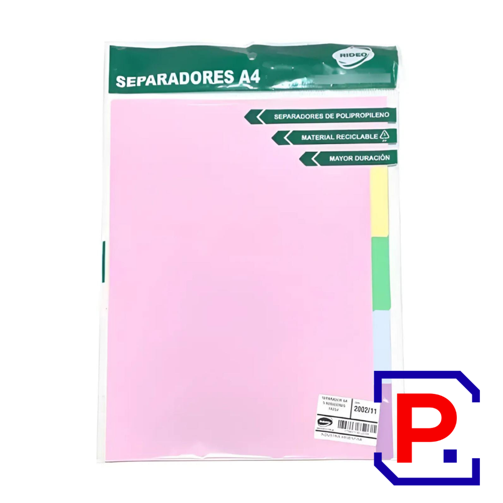 SEPARADOR A4 5 POSICIONES CON SOBRE MATT COLORES PASTEL 2004/6 RIDEO