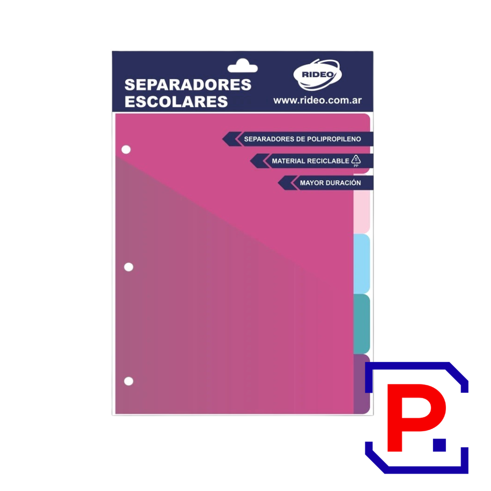 SEPARADOR ESCOLAR N°3 5 POSICIONES CON SOBRE MATT PASTEL 2003/6 RIDEO