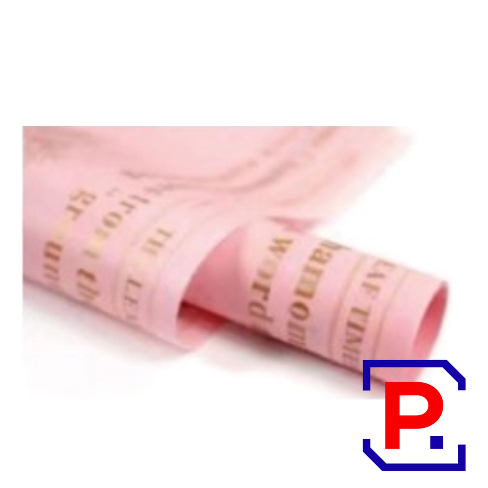 Papel decorativo impreso en PAPEL COREANO 57 X 57CM ROSA + TEXTO ORO PAQ X 20 UNID 647004