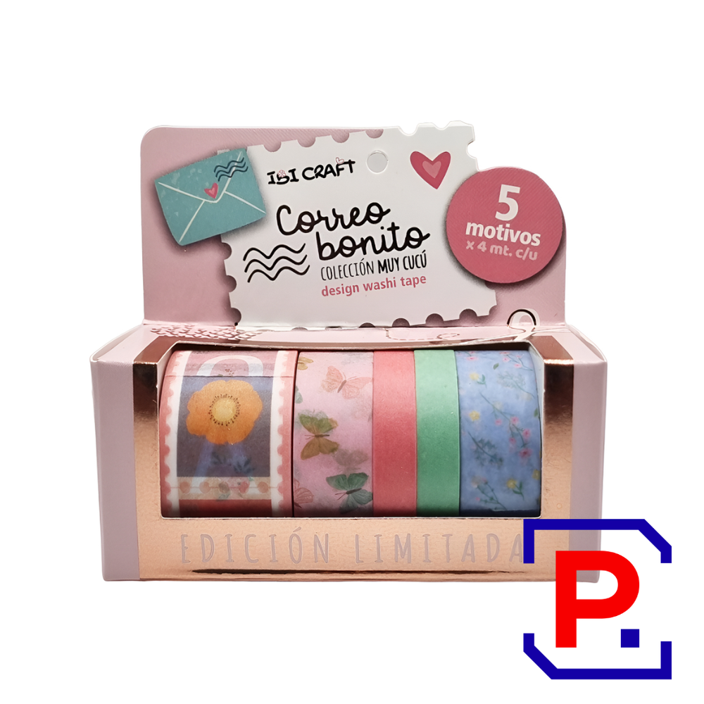 CINTA WASHI TAPE BOX 5 ROLLOS DE 4MTS COLECCION CORREO 055774