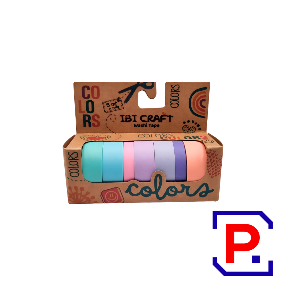 CINTA WASHI TAPE BOX 7 ROLLOS DE 5MTS PASTEL 055763