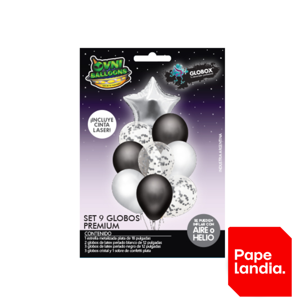 KIT GLOBOS DECO OVNI ESTRELLA PLATA X9 (APTO HELIO) 56049