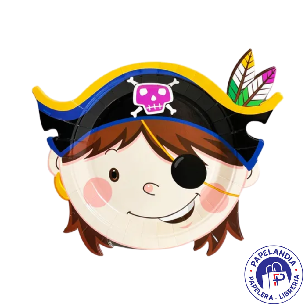PLATO DE POLIPAPEL 17CM CON FORMA PIRATA X6 UN DPC006