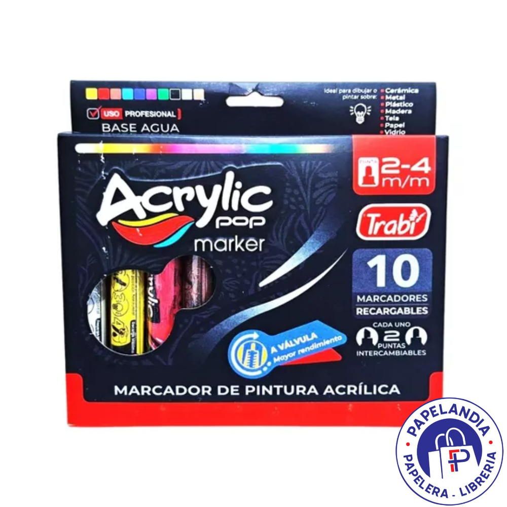 MARCADOR ACRYLIC POP A VALVULA 2-4 MM SURTIDO X 10