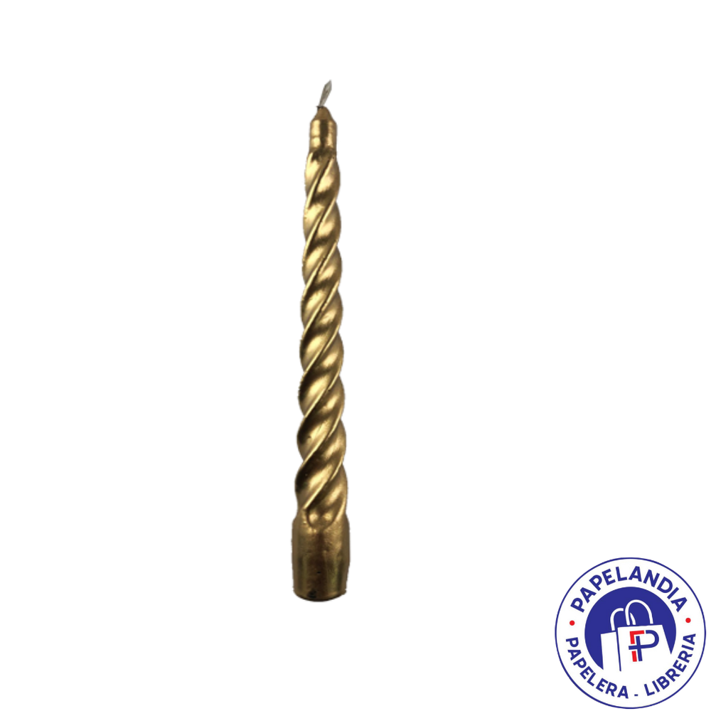 VELA ILUMINARTE TORNEADA DORADA 20CM X UNID