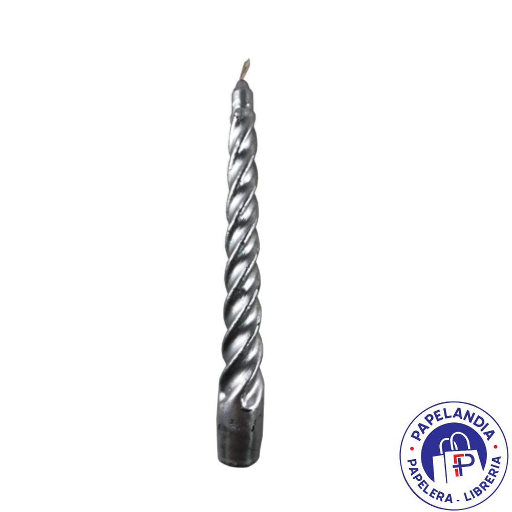 VELA ILUMINARTE TORNEADA PLATA 20CM X UNID