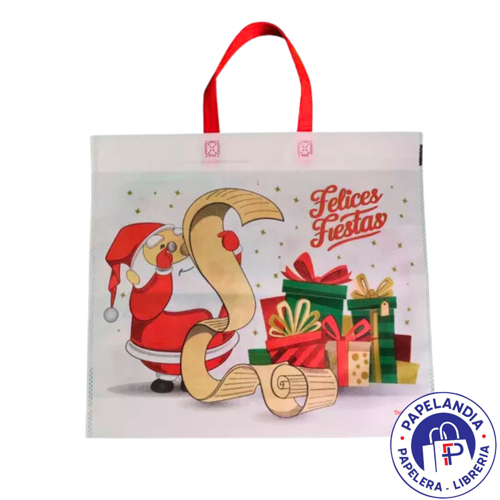 BOLSA FRISELINA 45X40 CON ASA FELICES FIESTAS PAPA NOEL FONDO BLANCO 4A-23