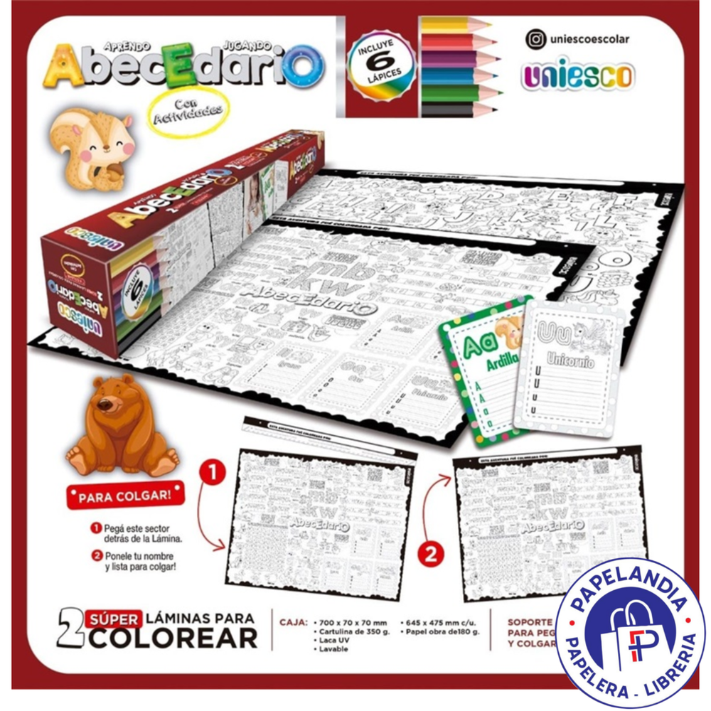 SET 2 LAMINAS PARA PINTAR Y COLGAR UNIESCO 70 X 50 CM ABECEDARIO