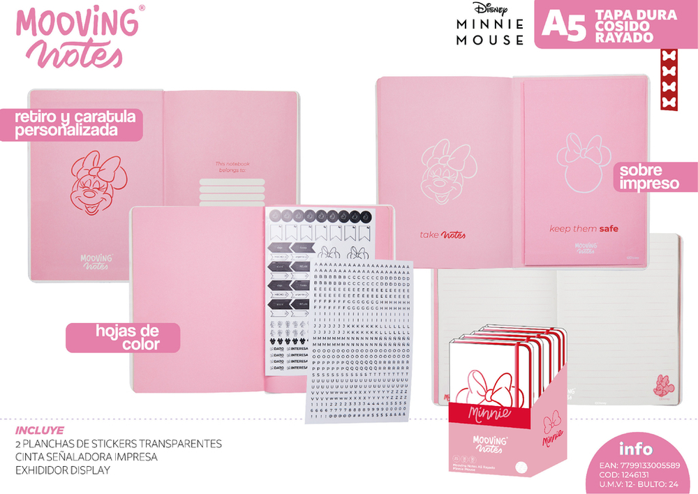 CUADERNO MOOVING 1246131 A5 NOTES TAPA DURA MINNIE MOUSE