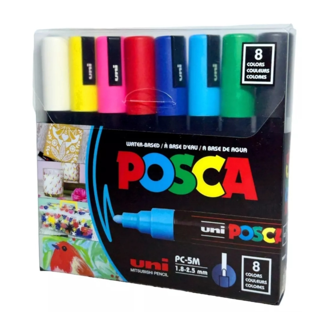 MARCADORES UNI POSCA 5M GRUESA X 8 UNID COLOR CLASICO