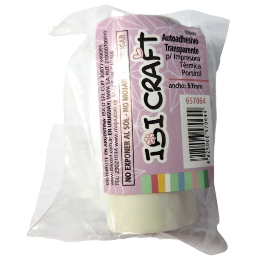 PAPEL PARA IMPRESORA IBICAFT AUTOADHESIVO TRANSPARENTE 57MM ANCHO X 3MTS 657064
