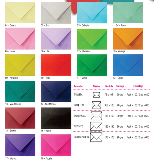 SOBRES DE COLORES COTILLON 9.5X12.5CM x uni