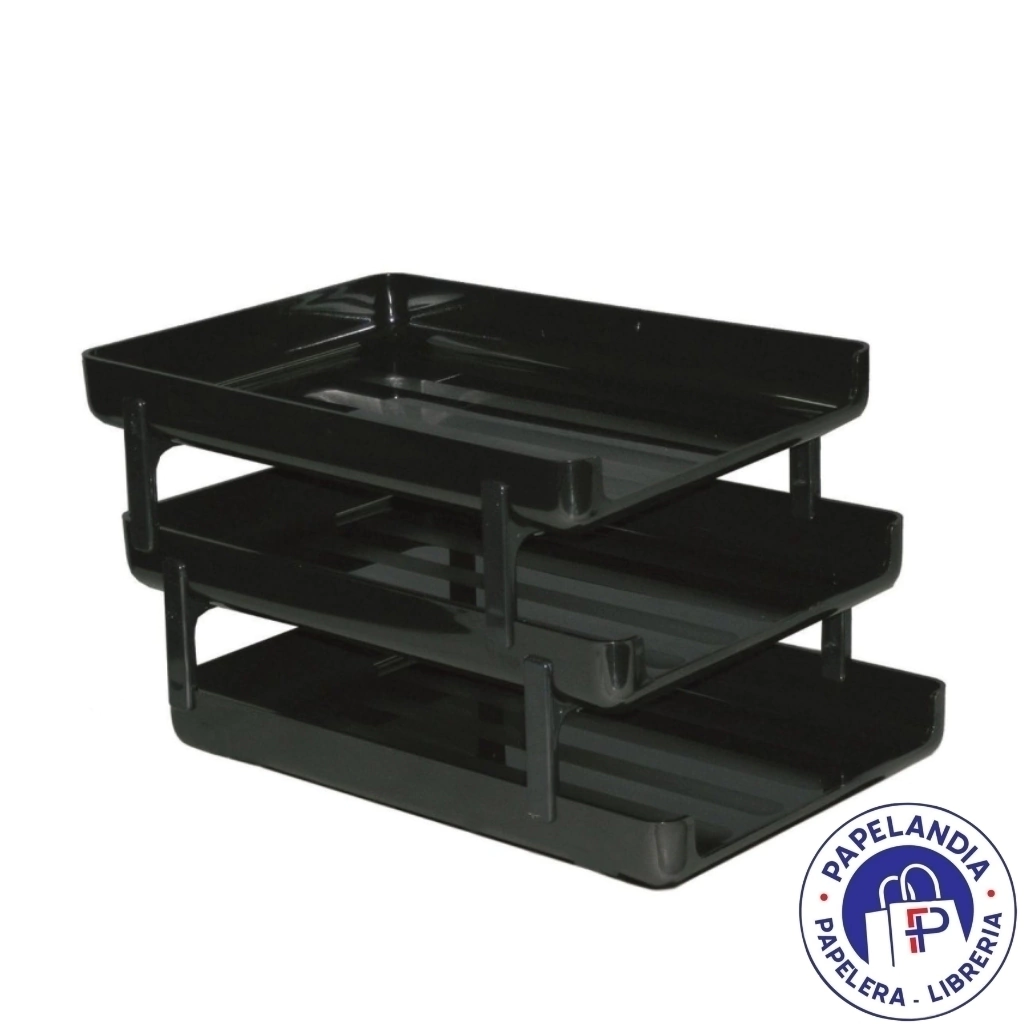 BANDEJA OFICIO 3 PISOS CON SEPARADORES NEGRA 0430NG
