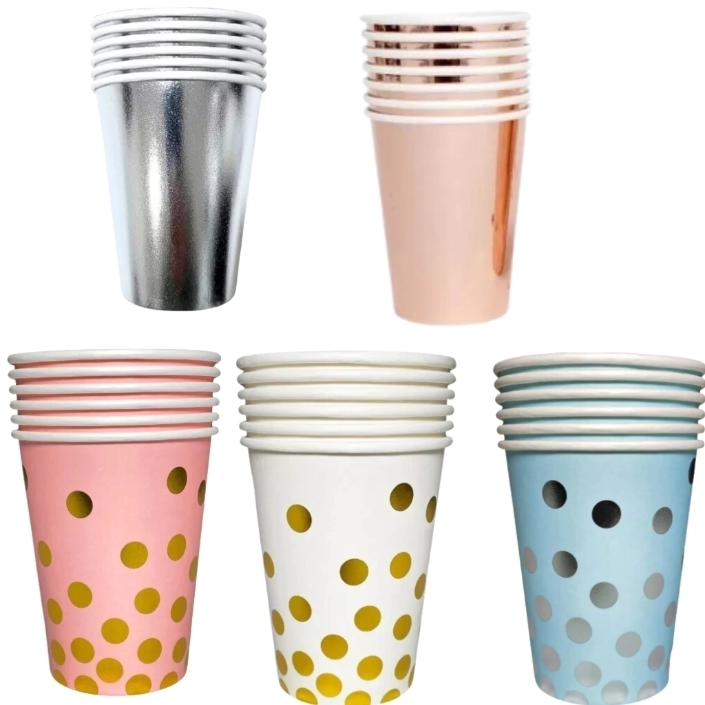 VASO DE POLIPAPEL 266CC X 6 UN. ROSA LUNARES DORADOS