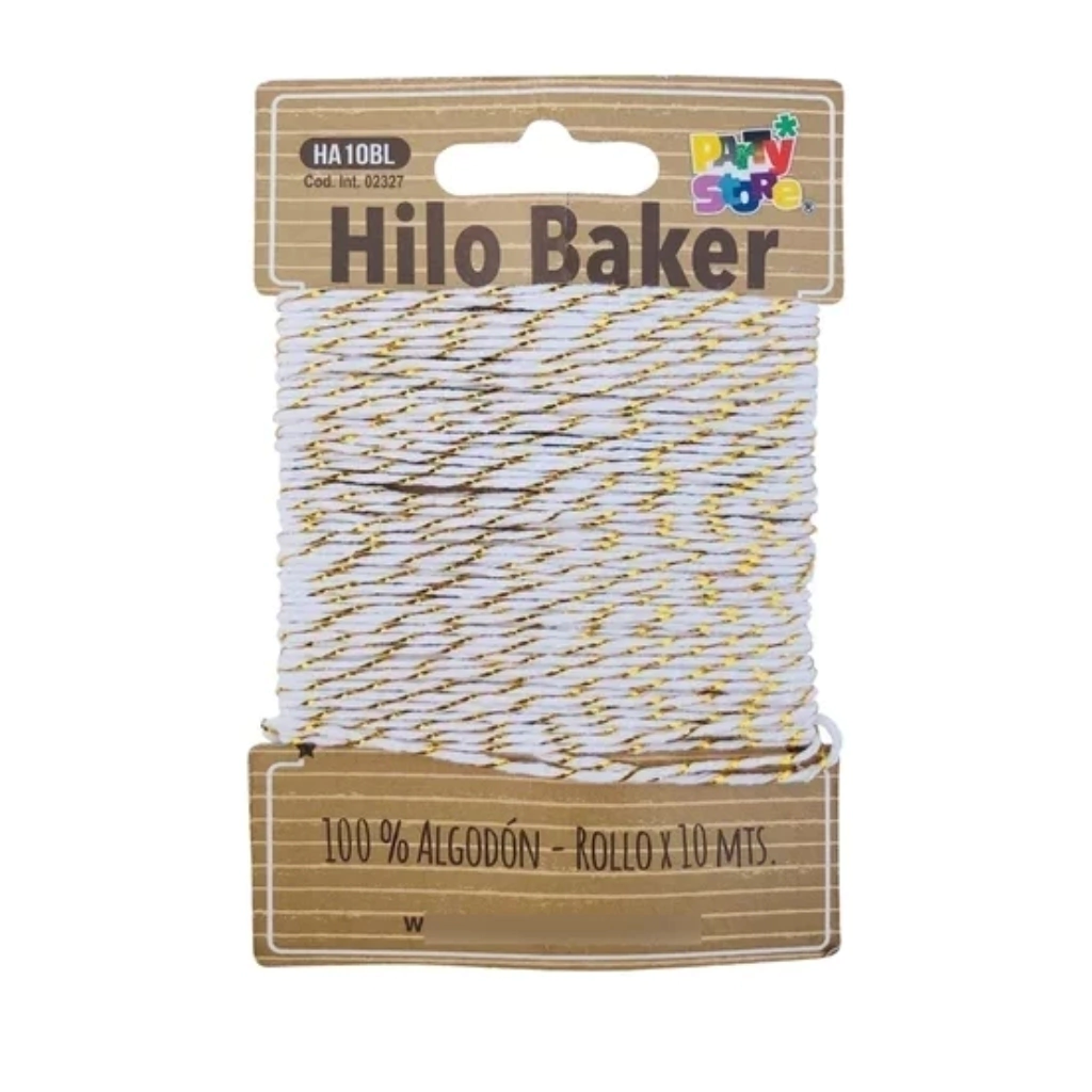 HILO BICOLOR BAKER TWINE BLANCO Y DORADO X 10 METROS HA10BL