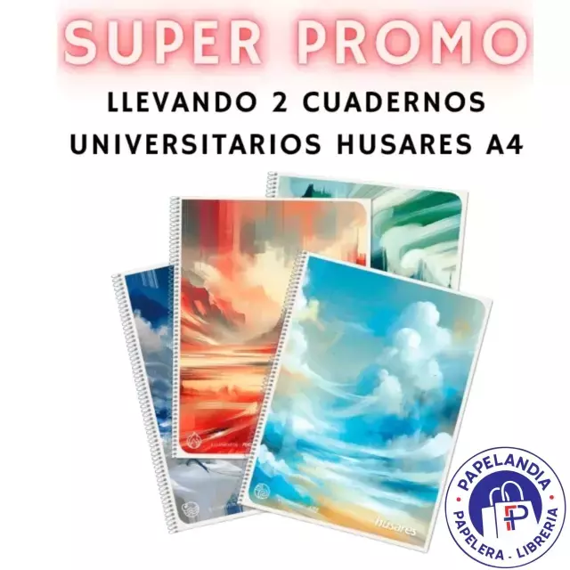 PROMO COMBO X 2 CUADERNO 22.3X29.7 C/ESPIRAL HUSARES X 80HJS = RAYADO 6294